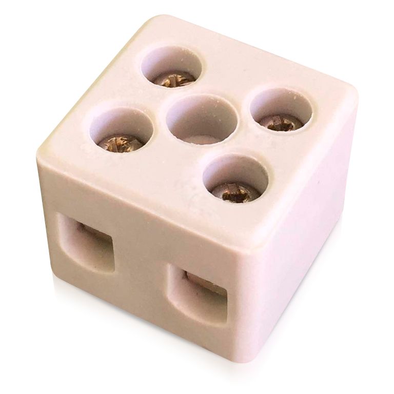 Conector em Porcelana 6 mm com furo central, para uso na instalação de materiais elétricos diversos, como chocadeiras, luminárias, etc.